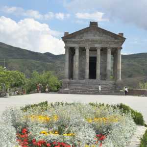 Der Tempel von Garni, malerisch über einer Basaltschlucht - er soll in der Zeit von Kaiser Trajan erbaut worden sein. -