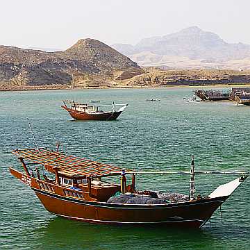 Die Dhaus sind die traditionellen Schiffe der arabischen Welt. Und die Omanis gelten als Meister im Bau dieser Schiffsklasse. Dhaus bildeten über Jahrhunderte die Verbindung Omans mit der Aussenwelt. Die Bedeutung spiegelt sich auch in der Literatur: Sindbad der Seefahrer ist eine der populärsten Figuren aus 1001 Nacht. | ||