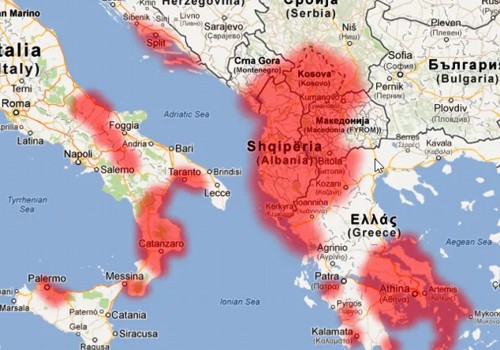 Die Häufigkeit, mit der man die albanische Sprache in Südosteuropa wiederfindet, ist ebenfalls hochinteressant. Hier spiegelt sich u. a. der Exidus der Albaner nach der Eroberung durch die Türken im 15. Jahrhundert nach Süditalien wieder. Dort gibt es noch heute albanischsprachige Dörfer. Und die Karte zeigt, dass das heutige Staatsgebiet Albaniens nicht deckungsgleich ist mit dem Siedlungsraum der albanischsprechenden Bevölkerung. Mutter Teresa war zwar Albanerin, wurde aber im heutigen Mazedonien geboren (wobei beides zum Zeitpunkt ihrer Geburt noch Teil des Osmanischen Reichs war).